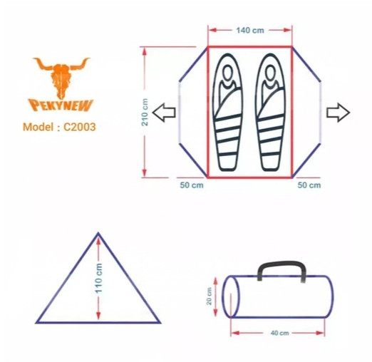 چادر کوهنوردی ۲نفره پکینیو (کله گاوی)مدل C2003