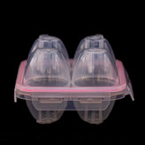 ابعاد محفظه نگهدارنده تخم مرغ 4 عددی برابر با 14 در 14 سانتی متر و ارتفاع 9 سانتی متری بوده و از وزن 120 گرمی که وزن بسیار سبکی محسوب شده بهره مند می باشد. درب این محفظه توسط 4 بست یا قفل مقاوم سرخود قابلیت باز و بسته شدن را خواهد داشت. این بست های مقاوم کاملا از جدا شدن درب در زمان جا به جایی جلوگیری خواهد کرد.