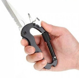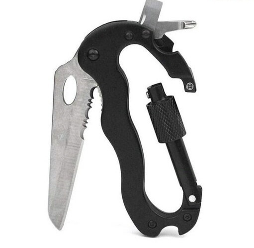 کارابین 5 کاره کوهنوردی – Function Carabiner Tool یک وسیله کاربردی 5 کاره با ابزارهایی شامل چاقو، پیچ گوشتی دو سو، پیچ گوشتی 4 سو، درب بازکن نوشابه و کارابین می باشد و برای استفاده در فعالیت های فنی، کوهنوردی، طبیعت گردی، کمپینگ و مسافرت می باشد. در انتخاب کارابین 5 کاره کوهنوردی – Function Carabiner Tool لازم است که به یکسری از نکات مهم توجه داشته باشید تا خرید بهتری انجام دهید. در ادامه به نکات مهم در خرید و ویژگیهای این محصول میپردازیم. کارابین 5 کاره کوهنوردی – Function Carabiner Tool تیغه این کارابین دارای طراحی دو منظوره به صورت صاف و اره ای بوده و از جنس فولاد مقاوم و ضد زنگ ساخته شده است. و به کاربر این امکان را میدهد تا علاوه بر استفاده معمولی از چاقو، بتواند به راحتی به بریدن طناب و یا پوست کندن پولک ماهی و بسیار از کارهای دیگر را انجام دهد. این کارابین 5 کاره دارای 5 ابزار میباشد که همه آنها در یک کارابین جمع شده اند تا استفاده کننده 5 ابزار را جدا تهیه نکرده و فضای اضافی اشغال نکنند.