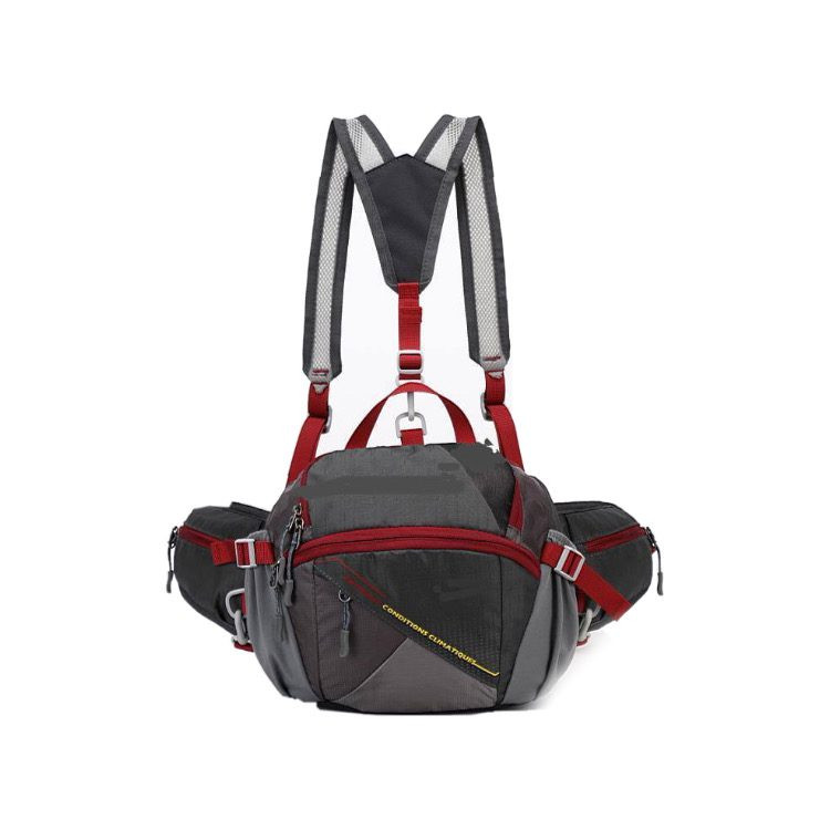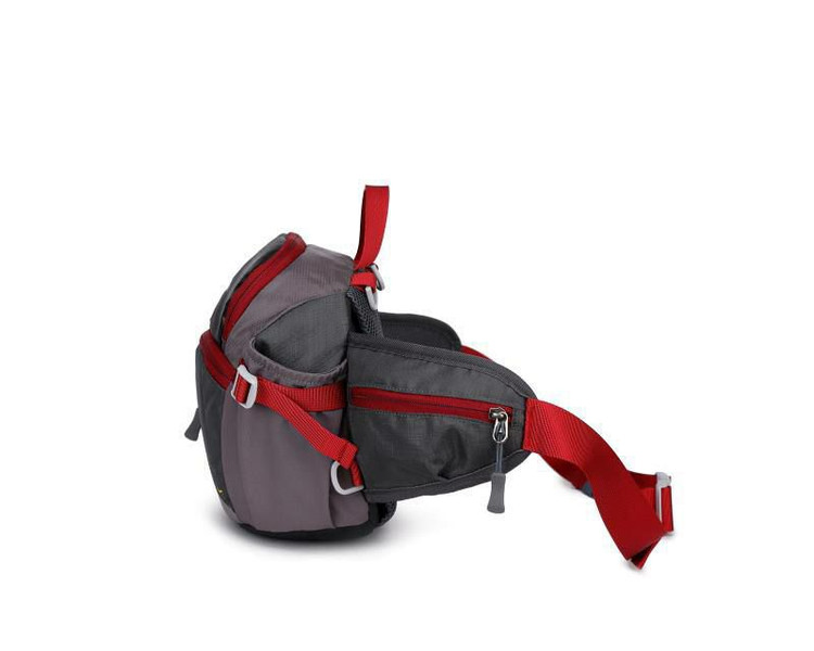 دارای دو جیب زیپ دار در روی پند های کناری و دو جیب کوچک بدون زیپ نیز در کناره های بدنه اصلی تعبیه شده جهت حمل و قرار دادن بطری آب و یا ماگ سفری و همچنین یک جیب زیپ دار بزرگ و کوچک در قسمت جلویی که حد فاصل این دو جیب فضای جیبی ایجاد کرده که با یک سگگ به قسمت بالایی کیف کمری متصل میشود.