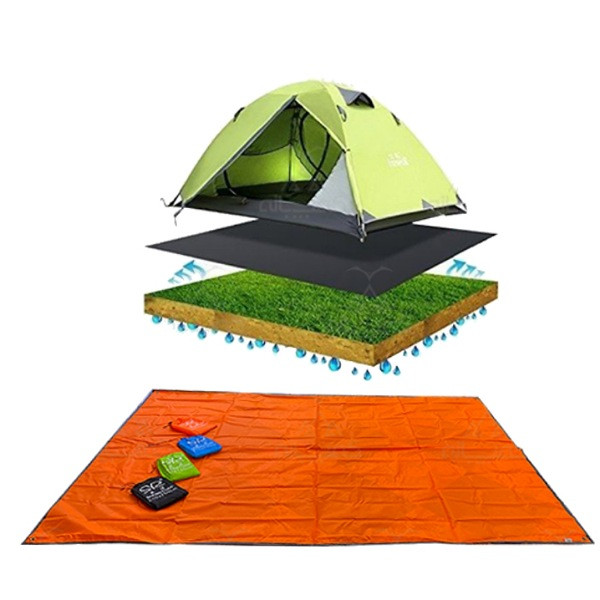 لازم به ذکر است که با توجه به کیفیت برتر و دوام طولانیمدت این محصول، قیمت آن به طور قابل ملاحظهای مناسب و اقتصادی به نظر میرسد. همچنین در چهار گوشه این زیرانداز حلقههایی تعبیه شده است که شما میتوانید با کمک این حلقهها میخهای مخصوص چادر را به زمین بکوبید و زیرانداز را به زمین متصل کنید