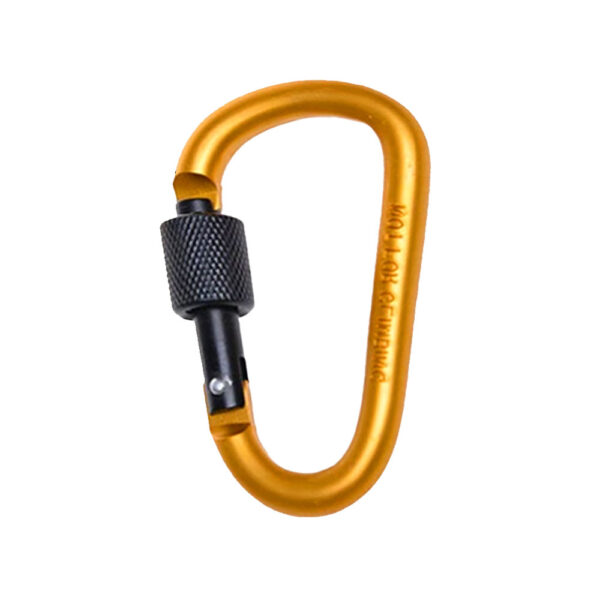 کارابین قفل پیچی یک حلقهی فلزی مقاوم است که قسمت بازشو آن به کمک یک قفل پیچی فلزی کاملا محکم میشود. از کارابین در موارد مختلفی استفاده میشود، مواردی مانند صخره نوردی، کمپینگ و … با توجه به ابعاد کوچک و قابل حمل این محصول، همراه داشتن آن در سفر و طبیعت گردی نیز توصیه میشود. مهمترین ویژگی مورد نیاز کارابین استحکام آن است که با توجه به بدنه فلزی و قفل مخصوص این مدل، این ویژگی تضمین میشود. ابعاد این محصول 8 در 4 سانتیمتر است و برای قلاب کردن، بستن طناب و … مناسب میباشد.