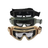 عینک مجهز به پوشش فیلتر هوا در حاشیه لنز می باشد تا ضمن تهویه هوا، از نفوذ غبار یا باد پرفشار به داخل عینک جلوگیری کند.